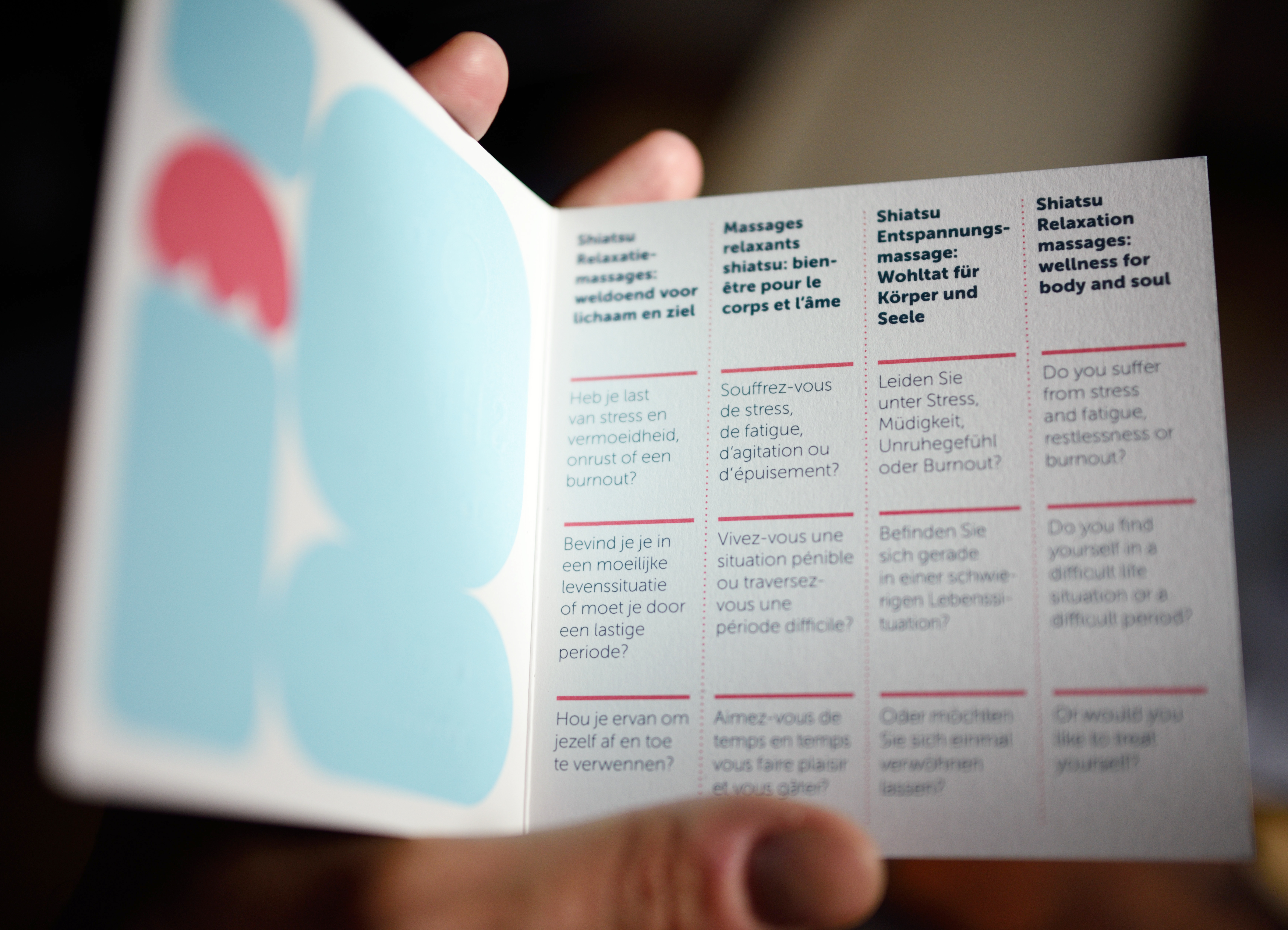 Conception d’un carton de promotion et d’une carte de visite pour un centre Shiatsu.